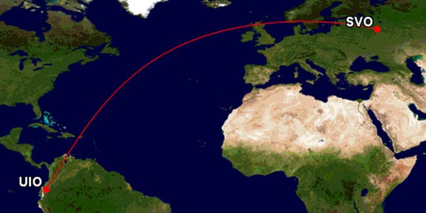Flight distance from Moscow to Quito: 6,255 nm