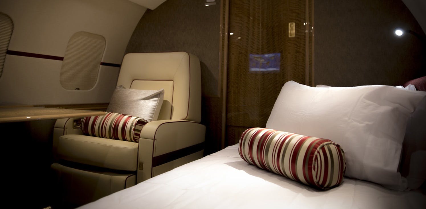 Many large body jets have divan seating that can be prepared as a private bedroom area. And some smaller aircraft such as the Phenom 300, have fully reclining seats, that can fit together and convert into very comfortable flat beds. Find out more about private jets with beds onboard.