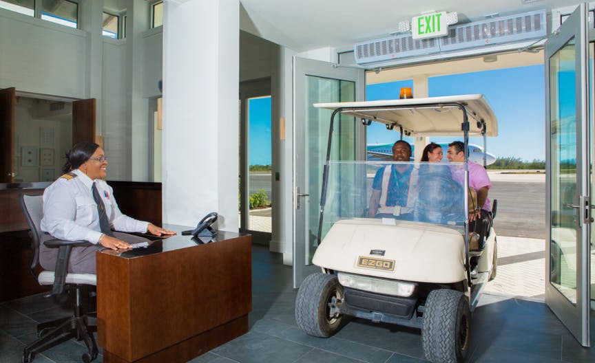 Comfort and convenience are the driving force behind the private aircraft market, so why shouldn’t this extend to the ground experience? Walking in the hot sun or occasional rain from the airplane to the customs hall can be a bit challenging or uncomfortable for older folks, children and babies. It isn’t far but we wanted to enhance our arrival experience by offering a comfortable seat in a golf cart from the aircraft straight through the building and out to their waiting vehicle. It’s also just fun!