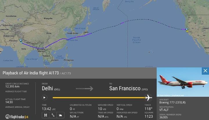 By changing the direction of the route from an Atlantic crossing to a Pacific crossing, the airline has added 1400 km to the flight and broken the distance record. The flight took place on 16 October 2016 and the airline has continued this eastern routing since. What’s interesting is that this also reduces the flight time (and fuel burn) by two hours. By taking advantage of the Jet Stream tailwinds, the Boeing 777 can fly from Delhi to San Francisco in just 14.5 hours (read more about how Jet Streams affect flight time). This distance record beats the previous longest flight of Auckland to Dubai, flown by Emirates (14,200 km or 7,667 nm ).