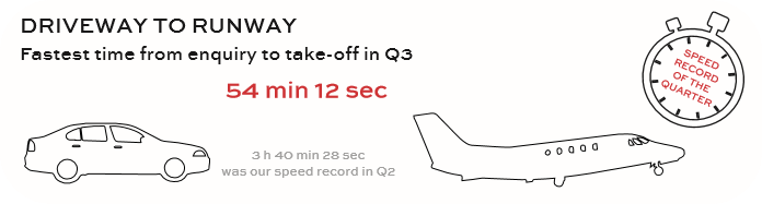 PrivateFly also holds some impressive speed records of our own. In our recent quarterly private jet trends report, we saw one customer go from enquiry to airborne in just 54 minutes and 12 seconds.