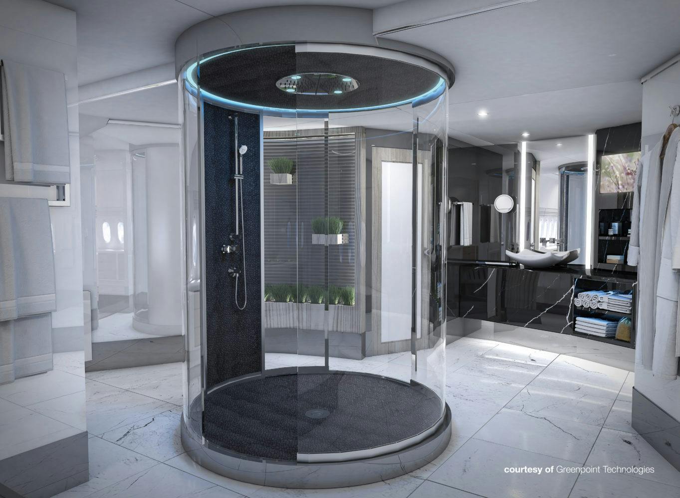 Greenpoint’s design, Lotus, features a more open plan design, unusually attaching design elements to the floor in free space, to showcase the size of the cabin area. Unique Aircraft Design offers a modern luxe interior, with rich tones of gold and grey.