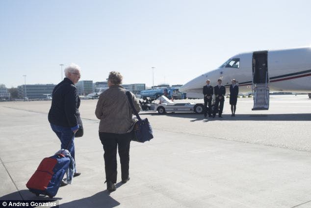 The grandmothers had the luxury of flying on a Legacy 500 from Amsterdam Schipol to Barcelona, an estimated price of £12,800, which can seat up to 13 passengers in its spacious and comfortable cabin. A slightly smaller jet alternative for this route, which still offers a high-end luxury sedan sensation, is the Mustang private jet at an estimated price of £5680.