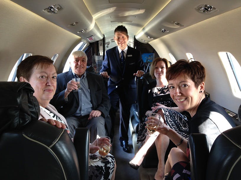 Mrs Ludford chose to fly on her birthday (which turned out to be a beautiful sunny day, with clear blue skies) and to take her husband Michael, and two daughters Frances and Joanna. We were there to greet them at London Luton Airport in the morning, where they flew from the Signature Flight Support FBO.