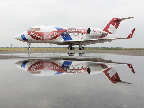 The temporary refit is estimated to have cost £120,000 and, while there is no suggestion that the young prince will actually fly onboard the aircraft, it will certainly get noticed if Hangar8 do decide to let other passengers charter it.