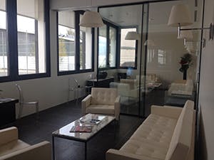 It offers all the essential facilities: a large lounge area with refreshments and plasma screens; conference rooms (configuration between 12 and 30 seats); and Wi-Fi.