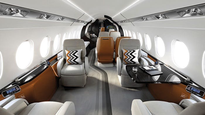A mock-up of the cabin at the show demonstrates its very spacious cabin cross-section – the biggest in business aviation. At 6ft 6 inches high and 8 ft 6 inches wide, this will be an important selling point against rival long range jets from Gulfstream and Bombardier.