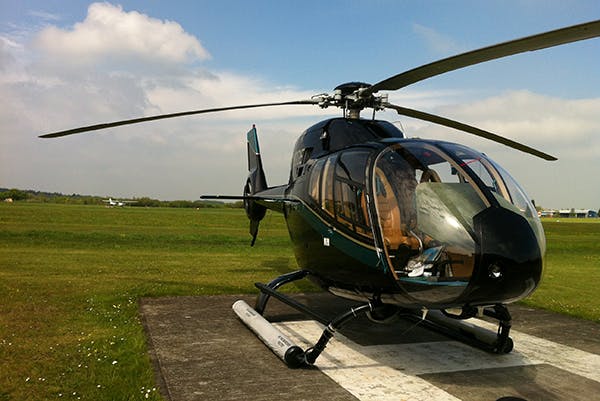 The helicopter leaves from Rochester Airport, just south of London. This tour was on board a 4-seat Eurocopter 120, with pilot Simon Higgins.