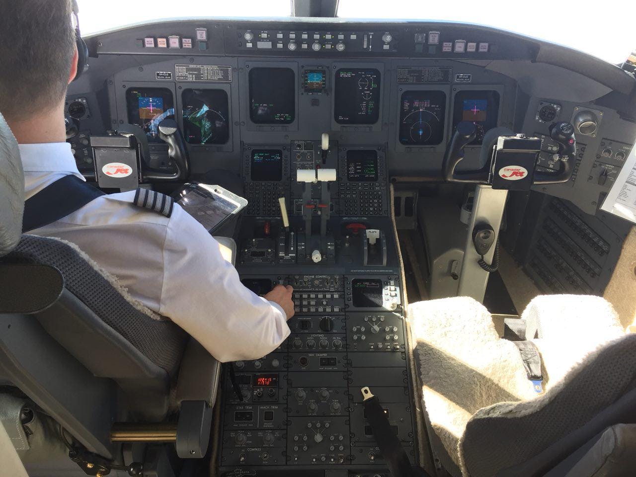 My aircraft was a popular heavy jet, the Challenger 850. It is capable of long distance flights and seats up to 13 passengers. I flew from London Luton Airport, to Barcelona.