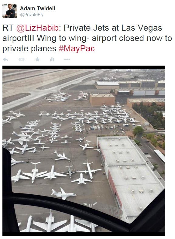 The boxing match, dubbed ‘Fight of The Century’, generated a huge demand for private jets in and out of the airport.