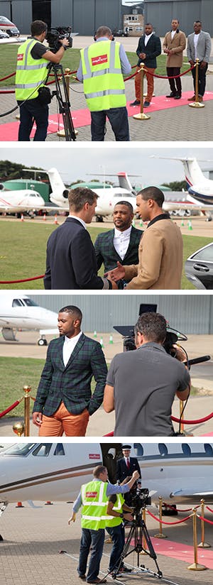 We filmed with ITV in September, alongside pop stars and previous X Factor contestants JLS. Band members Marvin Humes, Oritse Williams and JB Gill are seen on the PrivateFly red carpet, before boarding a Citation XL aircraft (part of London Executive Aviation’s fleet), while they introduce the competition to viewers.