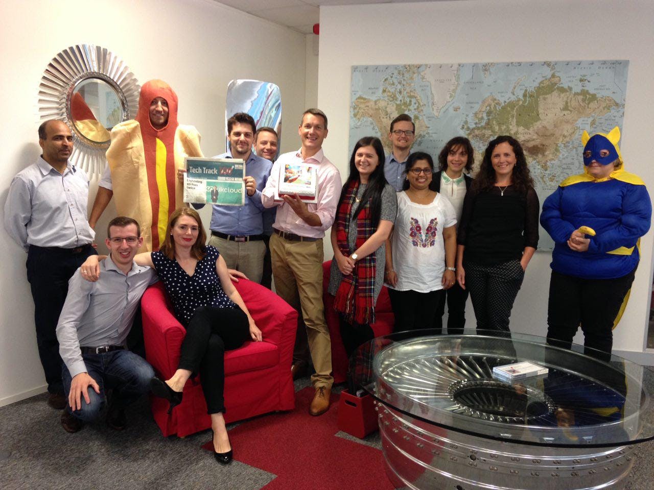 Our team is growing – with new roles in our sales, technology and US-based teams. And, in traditional fancy dress on your first day here, new starters Steve and Veronica (aka Hot Dog and Banana Man) were happy to help us celebrate our Tech Track success today.