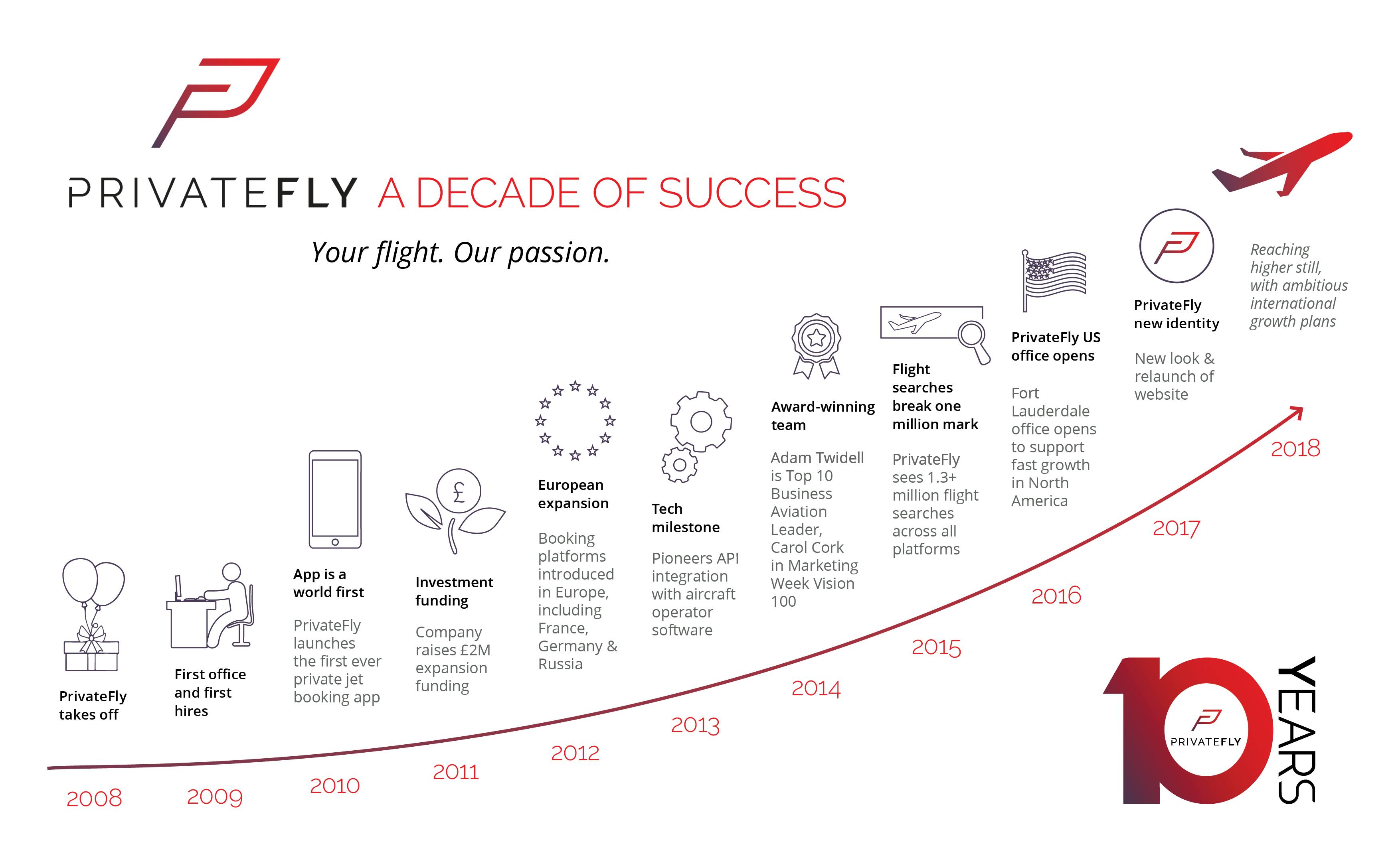 This month marks ten years since PrivateFly took off. It’s been a decade since we were a disruptive start-up, looking to convince the market that our vision of a tech-driven approach to private jet charter would succeed.
