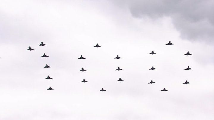 July 10th was a historic day of celebrations, including a parade of personnel, and a huge flypast by one hundred RAF aircraft from the past century at 13.00. This was watched by thousands of spectators lining The Mall and the area around Buckingham Palace, and broadcast live on the BBC.