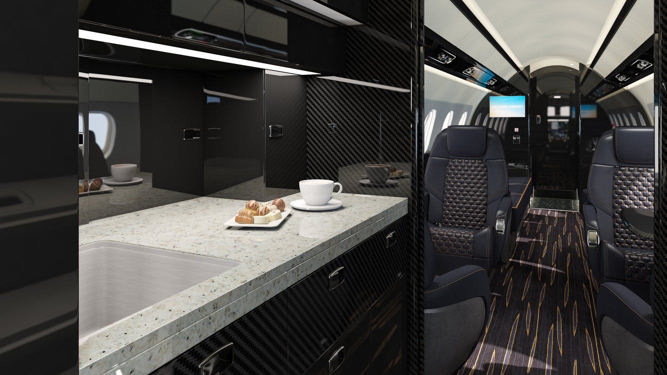 There’s no shortage of style too, with Embraer’s design team reaching a new level of detail with the Praetors, including custom-stitched seating; bespoke designer silk and wool carpets; and carbon fibre retractable tables.