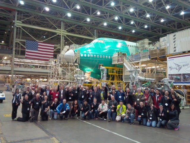 The convention gives its 250 ticket holders aviation experiences in Seattle with VIP access. Such as a tour of Boeing’s huge Everett Factory, where Boeing 747, 777 and 787 Dreamliner jets are assembled. While normal visitors can see the factory floor from above, AGF attendees can get in amongst the aircraft on the factory floor. Phones and cameras are banned, for security reasons.