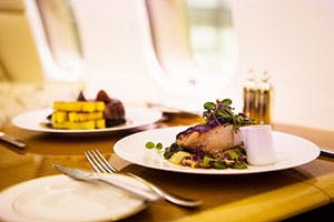The answer is pretty much anything you like. When it comes to private jet catering, it’s as bespoke as the itinerary. As the customer, you specify what you would like to eat before the flight, and we’ll work with a private jet caterer – or sometimes with specialised suppliers or restaurants – to arrange the perfect menu.