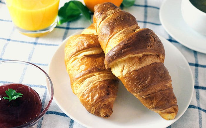 Breakfast is often served outbound on a day return business aviation flight. Warm croissants are our most requested breakfast item, sometimes served alone, but more often as part of a continental selection alongside other pastries and fruit.