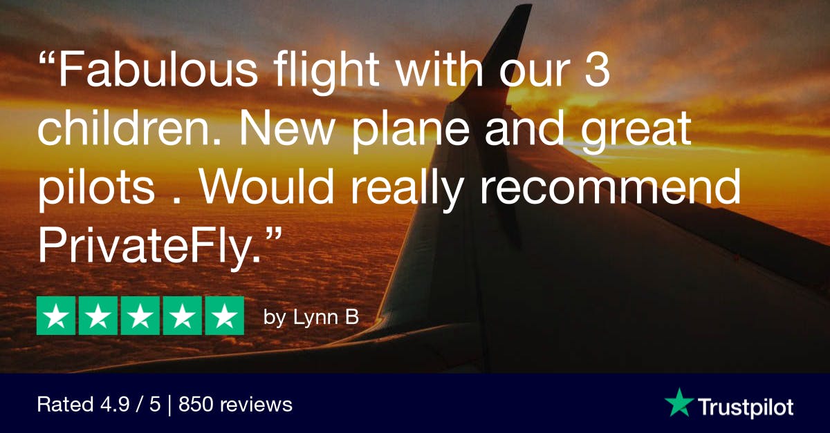 At PrivateFly we collect reviews via Trustpilot. With over 850 reviews, you can get a clear view of how our real-life customers feel by reading their comments. And we’re proud to hold an average Trustscore of 4.9 out of 5.