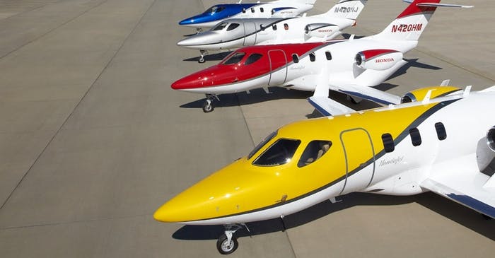 Honda uses bold sections of colour to illustrate Hondajet‘s point of difference to other small jets (but hasn’t given up on white altogether). And a colourful branded aircraft makes the ultimate flying poster site for many movie launches, music tours and corporate roadshows.