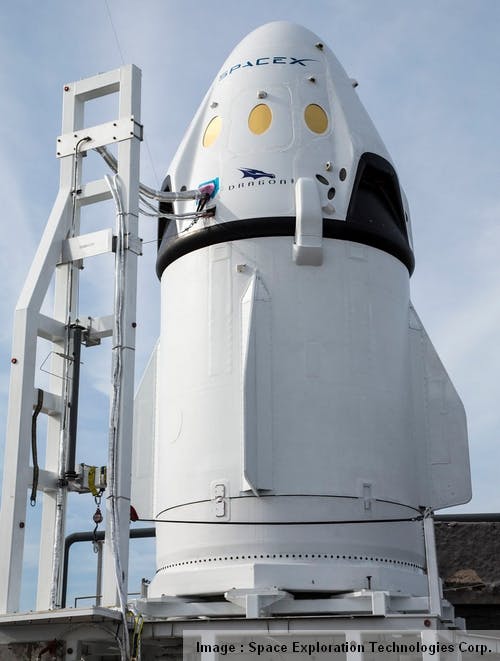 Current leaders in space capsule design include the Dragon capsule of the transport rocket SpaceX Falcon 9 (not to be confused with the Dassault Falcon family). The rocket can flown unmanned to the International Space Station, with the capsule able to carry up to seven passengers.