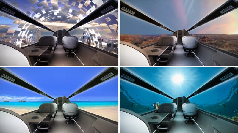 Instead, the jet will use external cameras to capture a real-time, 360-degree panoramic view of the space so passengers can still feel like there are windows. Or they can project different images, depending on their taste, including space or just a presentation for work.