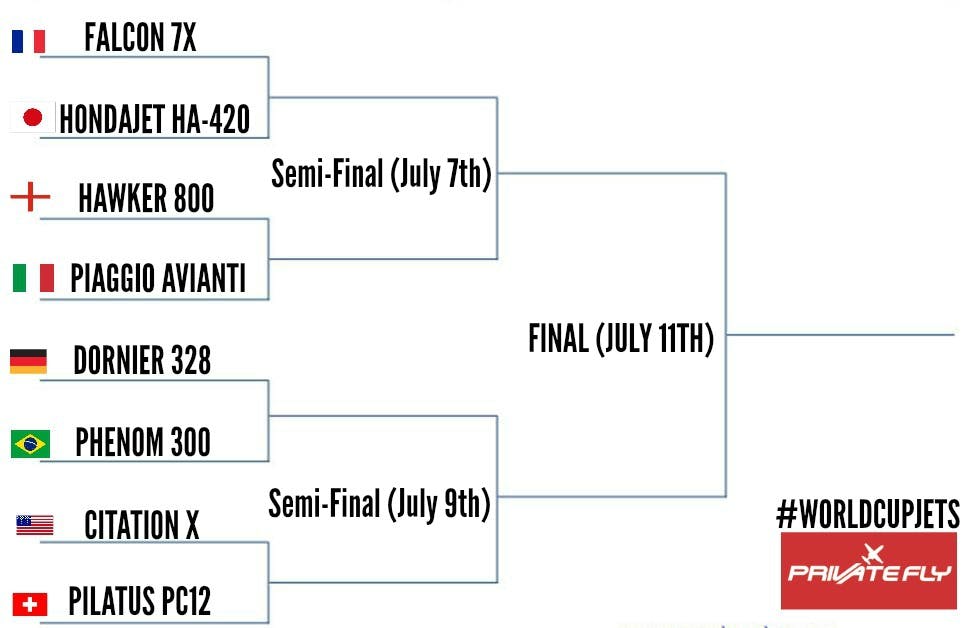 That’s why, starting this week on our Facebook page, we’re going to be running our own World Cup tournament. But instead of football, countries will be represented by a private jet associated with them. And it’s up to the fans to decide who get to take home the glory – no refs, fouls or red cards in our World Cup!